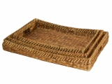3pc water hyacinth serving tray with rattan rim