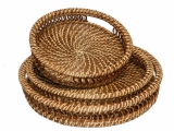 3pc round rattan serving tray with pattern