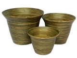 3pc round spun bamboo planters - antique black color
