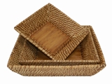3pc square rattan bowl with bamboo bottom