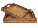 3pc square water hyacinth tray with rattan handles