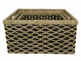 Rectangular seagrass storage basket 2 tone