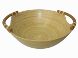 Round bamboo bowl with rattan handle