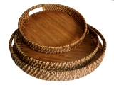 Round rattan/ laminated bamboo serving tray, set of 3 pcs