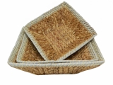 Square water hyacinth bowl with rope rim