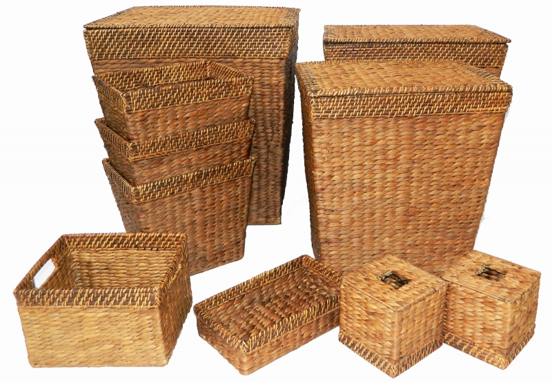 Handcrafted with care, these baskets exude natural elegance and eco-friendly craftsmanship. The sturdy water hyacinth material provides durability and ensures the baskets can hold various items, from organizing household essentials to displaying decorative accents. The rattan rim adds a touch of sophistication, enhancing the baskets' overall aesthetic appeal. With their versatile rectangular shape, these baskets can fit seamlessly into any space, whether it's the living room, bedroom, or bathroom. Embrace sustainable style and practicality with these exquisite water hyacinth baskets with rattan rim.