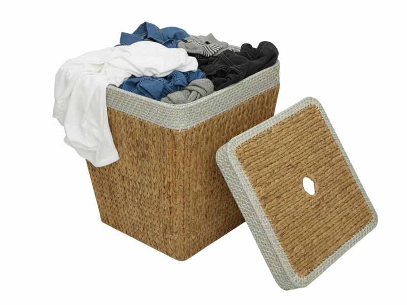 Rectangular water hyacinth hamper with rope rim