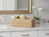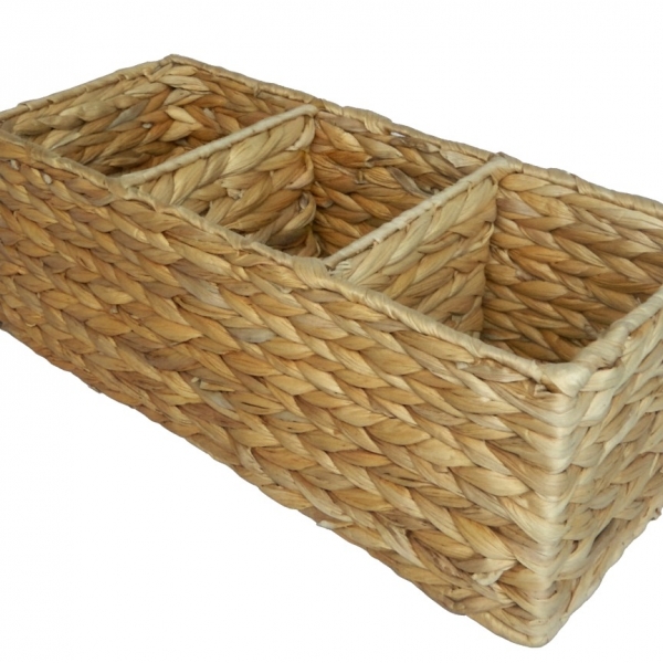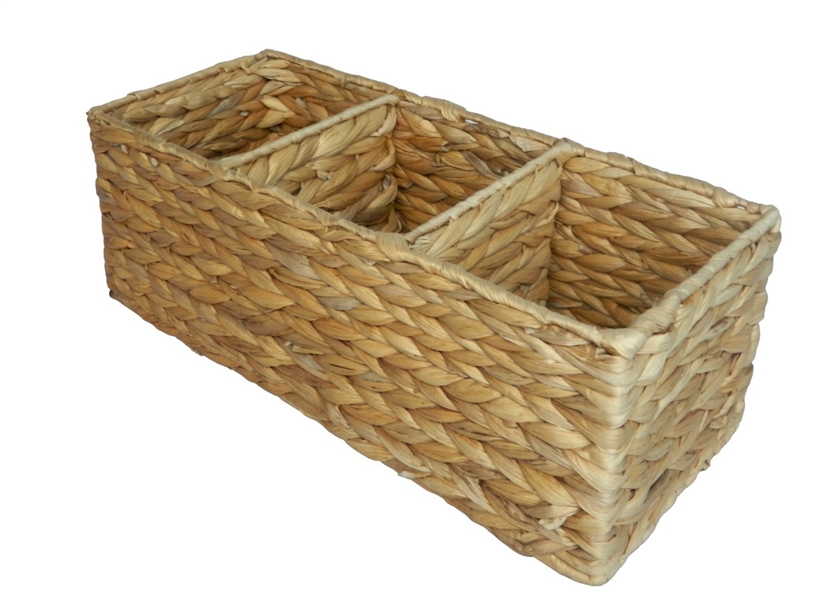 Discover the elegance of sustainable organization with this multi-compartment water hyacinth tank tray. Handwoven from natural fibers, this rectangular storage solution features three distinct sections, perfect for decluttering any space. Its warm, earthy tones and intricate braid pattern add a touch of bohemian chic and organic texture to your home decor. Ideal for a variety of uses, from kitchen utensil holder to office supply organizer or bathroom vanity tidy. This eco-friendly basket combines practical functionality with aesthetic appeal, making it a stylish and versatile accessory for modern living. Enhance your living areas with this durable and charming natural woven organizer, designed for both style and convenience.