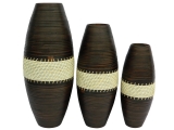 Round bamboo vase with rope, set of 3 pcs