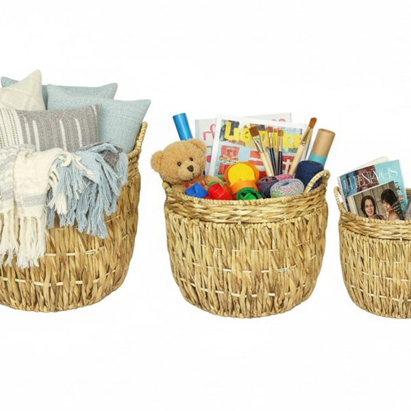 This beautifully crafted water hyacinth basket exudes natural charm and practical elegance, perfect for enhancing any living space. Made from sustainably sourced water hyacinth, its intricate hand-woven texture showcases the unique beauty of natural fibers, bringing an organic, earthy feel to your home decor. The basket features a sturdy, rounded silhouette with subtle integrated handles along the rim, making it easy to move while maintaining its aesthetic appeal. Its versatile design is ideal for various storage needs, from organizing household items to serving as a stylish planter cover or a decorative accent piece. This eco-friendly piece blends seamlessly with bohemian, farmhouse, coastal, and minimalist interior styles, adding warmth and texture. It's an excellent choice for those seeking sustainable home solutions with a touch of rustic sophistication. A perfect blend of form and function.