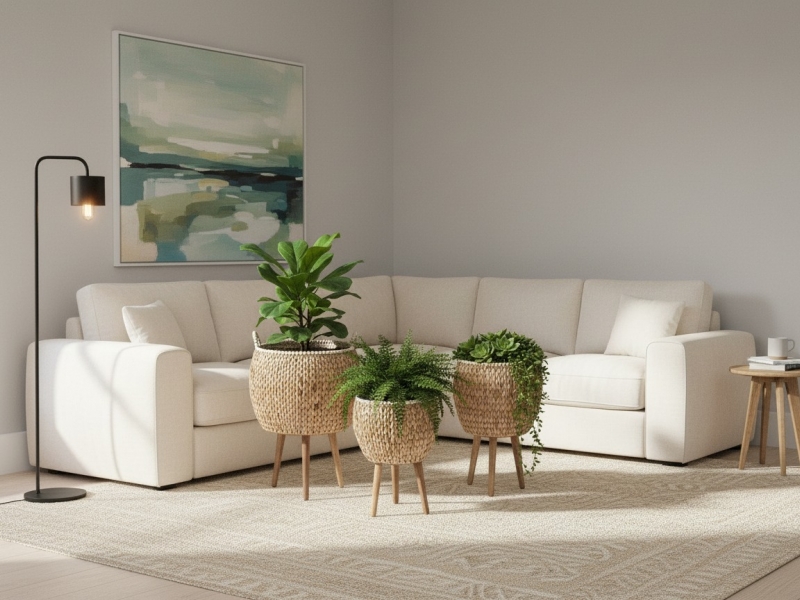 Enhance your interior space with this charming set of three water hyacinth planters, featuring elegant wooden legs and delicate wooden bead detailing around the rim. These natural-toned, hand-woven baskets offer a perfect blend of bohemian and modern rustic styles, making them versatile additions to any home decor. Designed for indoor use, these sturdy plant stands provide an elevated home for your favorite greenery, from lush houseplants to vibrant floral arrangements. The varying sizes allow for a dynamic display, bringing warmth and organic texture to living rooms, bedrooms, or sunrooms. Ideal for adding a touch of natural elegance and functionality, these planters are a must-have for eco-conscious decorators seeking stylish and sustainable home accents.