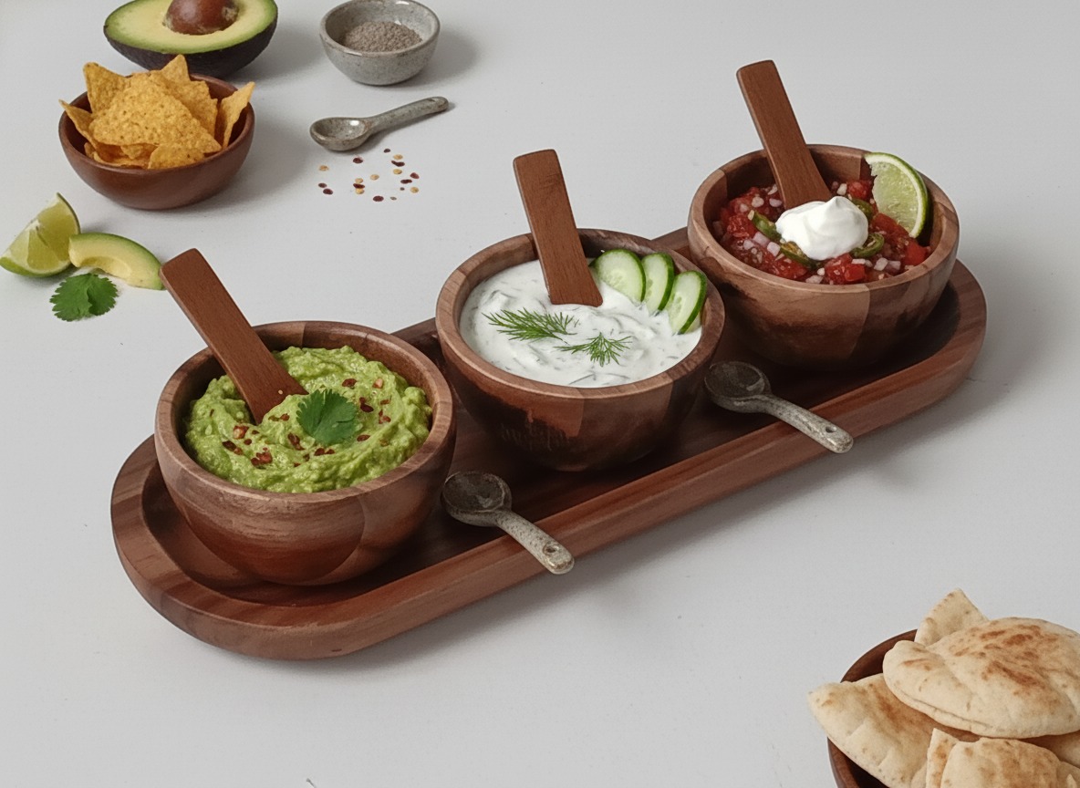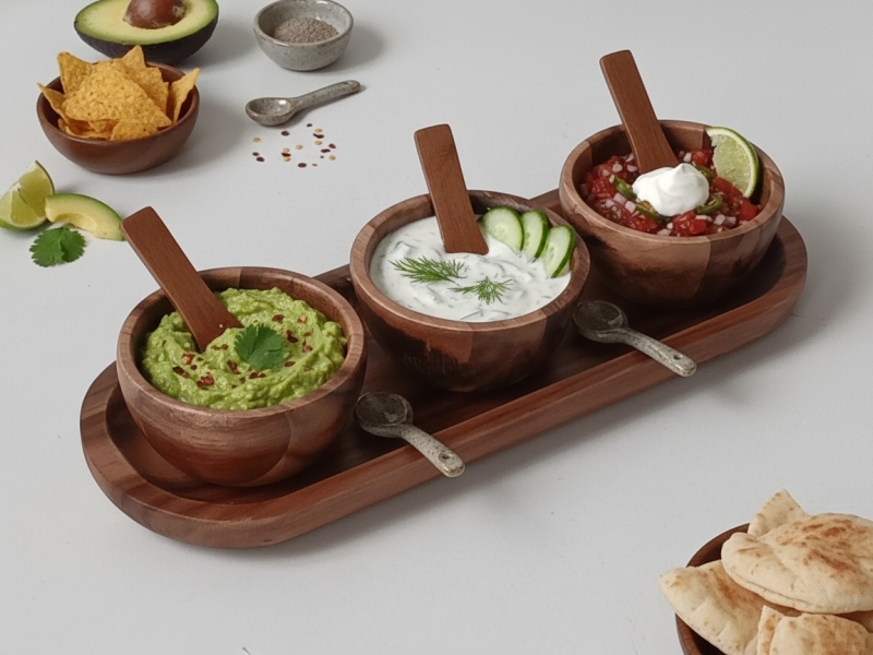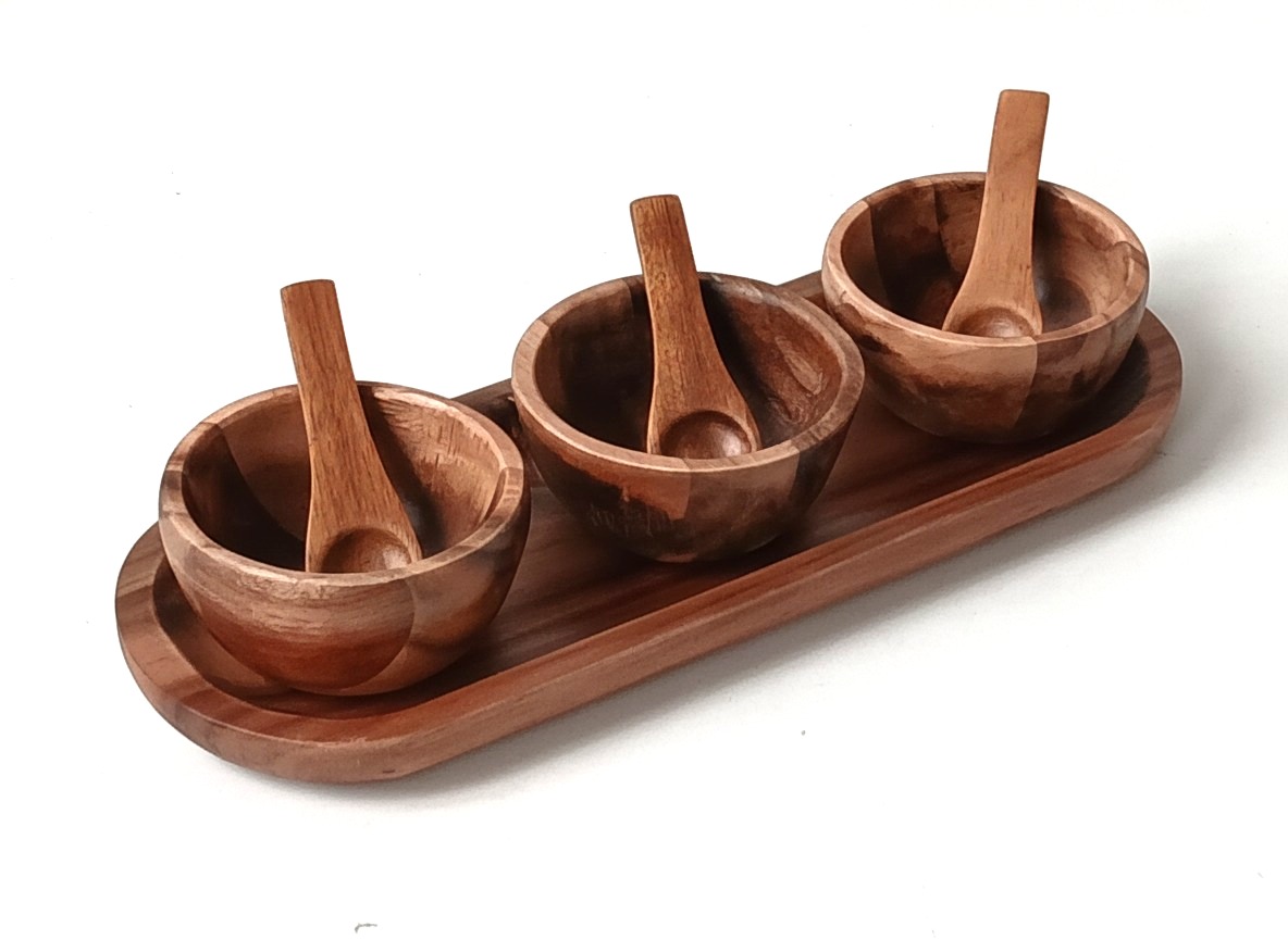 4pc acacia dip bowl set