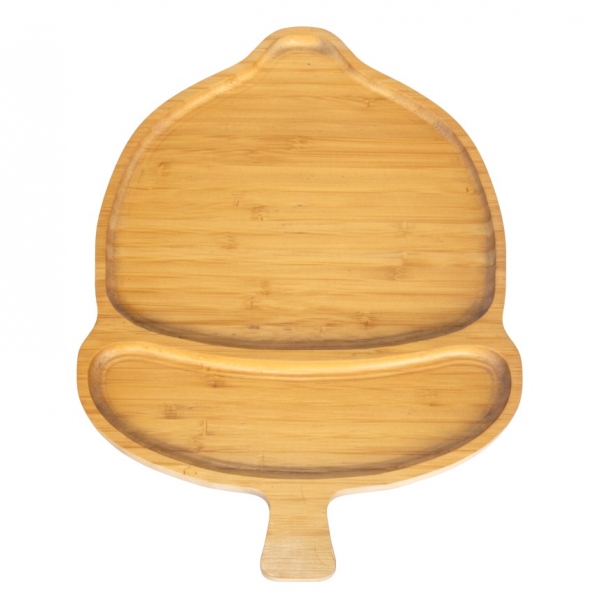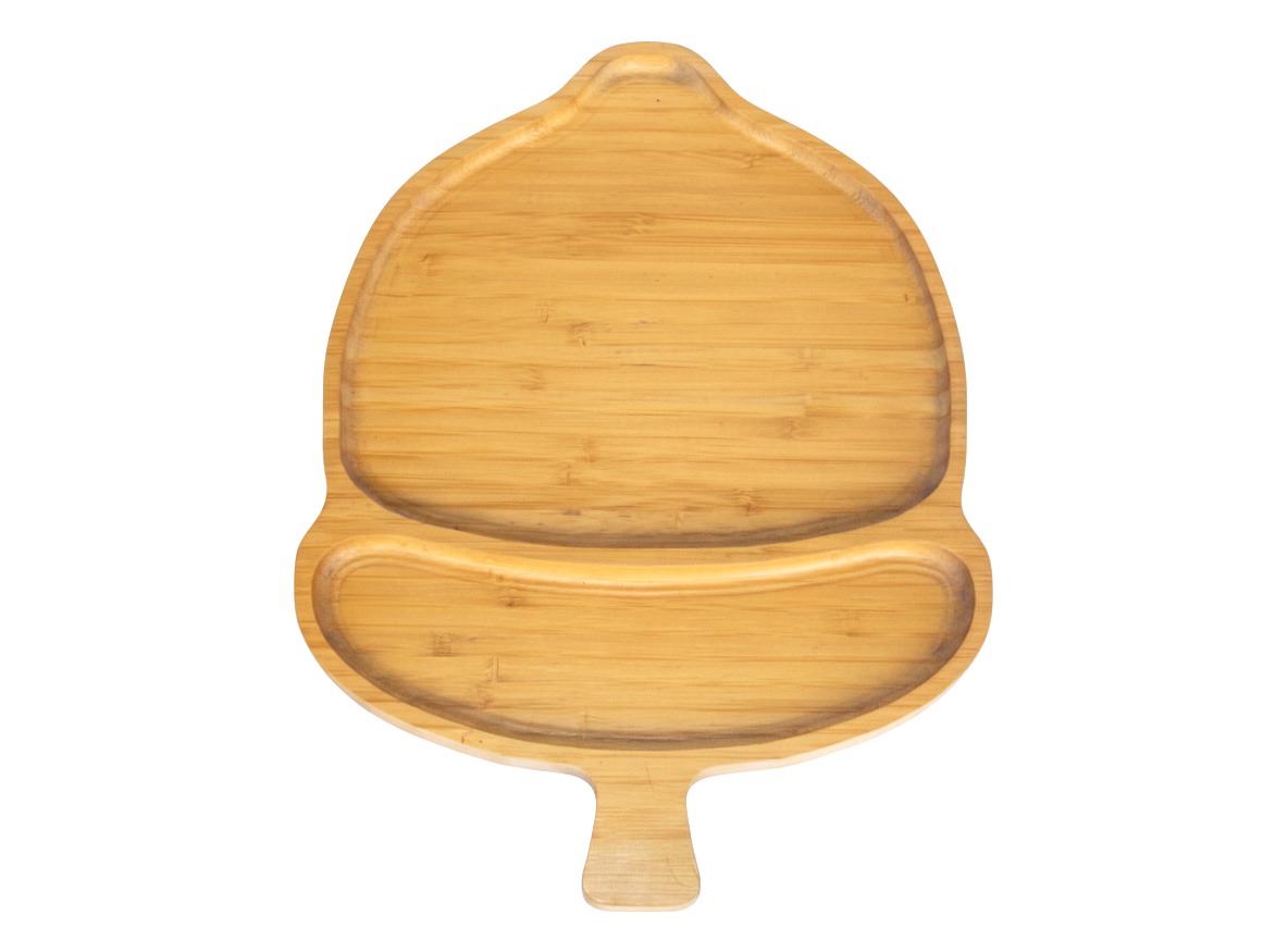 Discover this charming pine cone shaped bamboo serving platter, a delightful addition to any home or gathering. Crafted from sustainable bamboo, this eco-friendly dish features a distinctive natural wood grain and a unique silhouette, perfectly capturing the essence of rustic elegance. The platter is thoughtfully designed with two distinct compartments, ideal for elegantly presenting a variety of snacks, appetizers, or treats. Its larger upper section can hold a main item like crackers or cheese, while the smaller, elongated lower section is perfect for dips, olives, or nuts. This versatile serving piece is not only practical for entertaining guests but also serves as a beautiful decorative accent. Elevate your table setting with this stylish, durable, and naturally appealing wooden platter, perfect for everyday use or special occasions. Its SEO-friendly design makes it a top choice for those seeking sustainable and aesthetic kitchenware.
