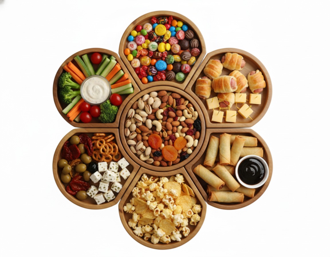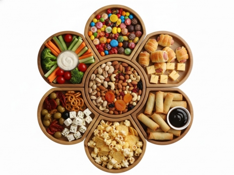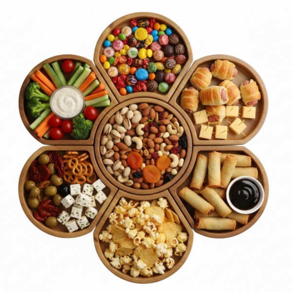 • Versatile Design: Unique flower-shaped layout with multiple compartments, ideal for serving a diverse array of snacks, appetizers, or desserts.