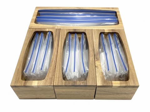 Our acacia foil and plastic wrap dispenser obtains its ability to simplify and streamline daily food preparation tasks. With its easy-to-use design, this dispenser makes it easy to access and dispense foil, plastic wrap, and other kitchen essentials. Its natural, eco-friendly acacia wood construction adds a touch of elegance to any kitchen, while its durable build ensures that it can withstand frequent use. Whether used in a home kitchen or professional setting, this acacia foil and plastic wrap dispenser is a practical and stylish addition to any space.
