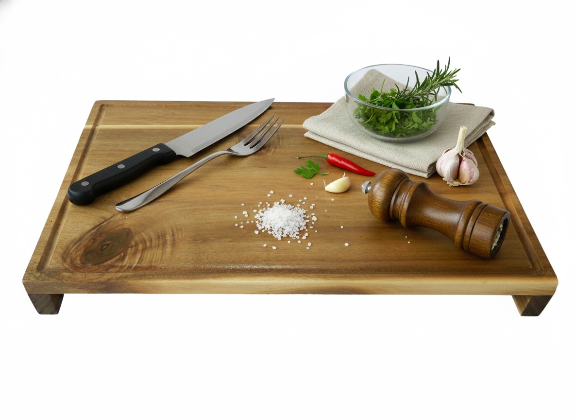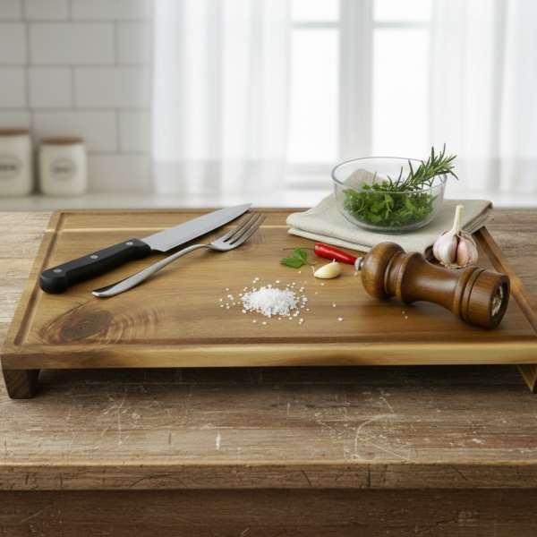 Discover the blend of functionality and elegance with our Vietnam acacia footed cutting board. Handcrafted from sustainably sourced acacia wood, this cutting board showcases the wood's natural beauty with its rich grain patterns and warm tones. The footed design elevates the board, providing stability and ease of use, while also allowing for easy handling and serving. Perfect for both food preparation and presentation, this board is ideal for chopping, slicing, and serving an array of culinary delights. Acacia's natural antibacterial properties ensure a hygienic surface for all your kitchen needs. Easy to clean and maintain, our footed cutting board combines sustainable craftsmanship with practical design. Enhance your kitchen with this unique piece that offers both style and superior functionality.
