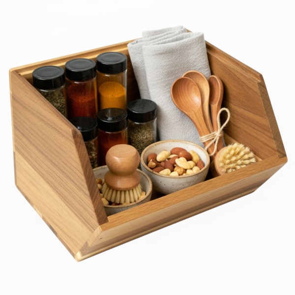 This versatile acacia wood pantry bin offers a stylish and practical solution for home organization. Crafted from beautiful acacia wood with its distinctive grain, this open-top storage container features a thoughtfully designed slanted front, making contents easily accessible and visible. Ideal for decluttering kitchen pantries, shelves, and countertops, it’s perfect for storing dry goods, snacks, produce, or even small kitchen essentials. Beyond the kitchen, its natural aesthetic seamlessly blends with various decor styles, providing chic storage in living rooms, offices, or bedrooms. Enhance your home’s functionality and add a touch of rustic elegance with this durable and eco-friendly acacia storage bin, perfect for a tidy and aesthetically pleasing space.