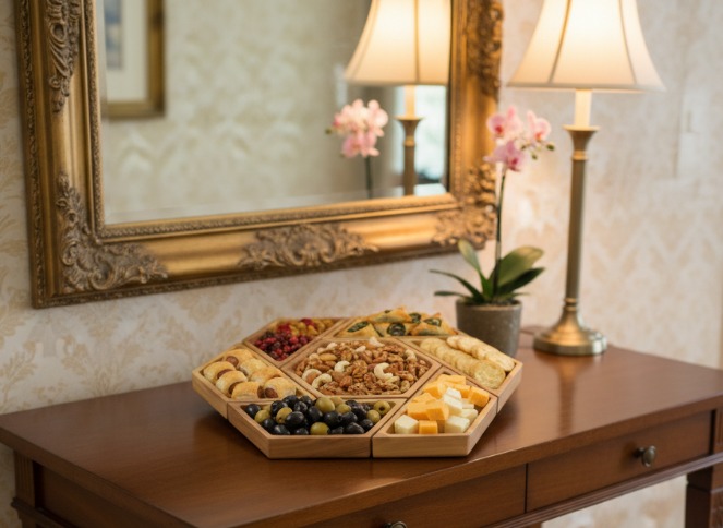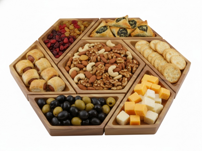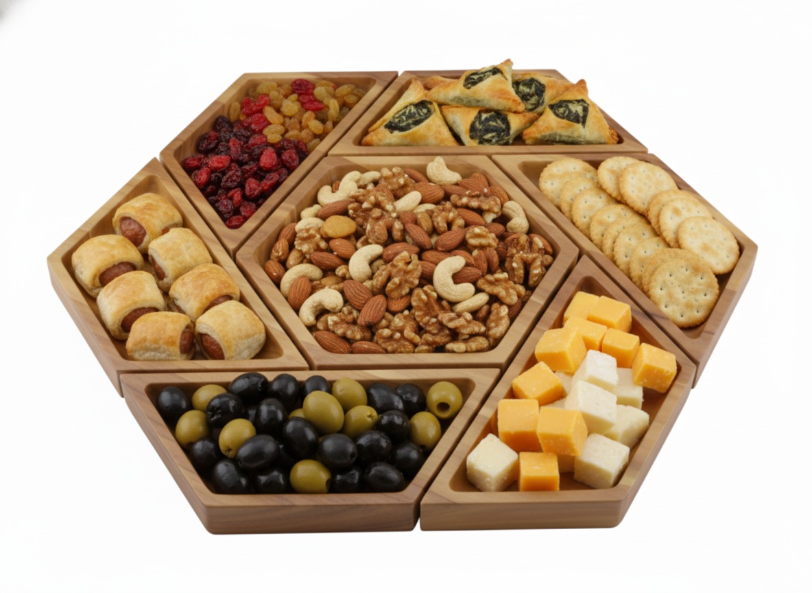 • Modular Hexagonal Design: Interlocking pieces allow for customizable serving arrangements, adapting to various occasions and food selections.