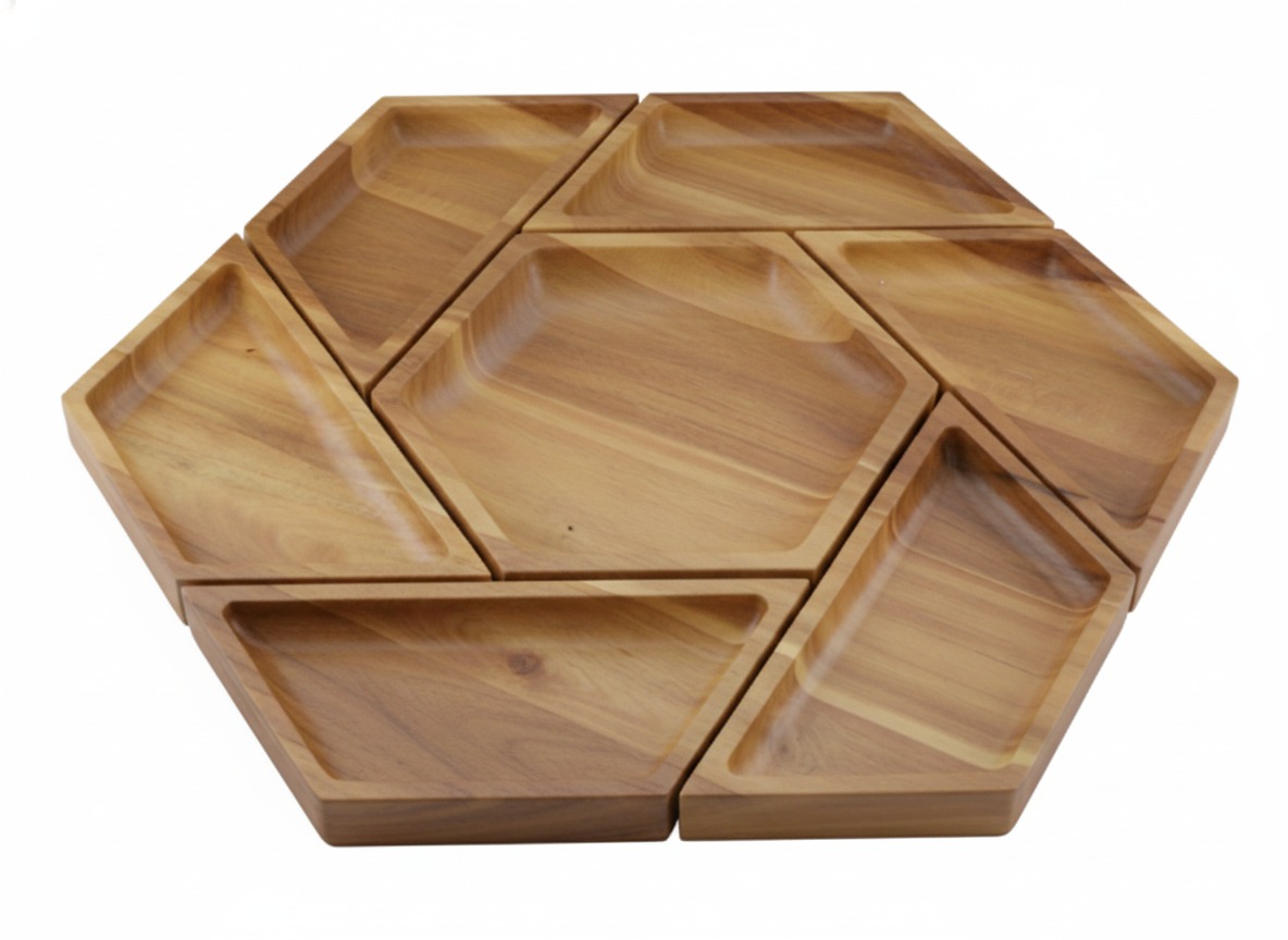 Acacia Wood Modular Serving Platter Set - Versatile Hexagonal Design