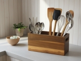 Discover this versatile wooden kitchen organizer, meticulously crafted from beautiful natural wood with varying grain patterns that add a rustic yet modern touch to any space. Featuring three generously sized compartments, it's perfect for neatly storing cutlery, kitchen utensils, napkins, or spices, keeping your countertops clutter-free. The integrated cutout handles on both sides ensure easy portability, allowing you to move it effortlessly from kitchen to dining area, or even for outdoor entertaining. Ideal for enhancing home decor, this durable and stylish caddy brings both functionality and aesthetic appeal to your home. Its compact design makes it a practical solution for maximizing storage in smaller kitchens or dining rooms, promoting an organized living environment. A must-have for those seeking stylish organizational tools.