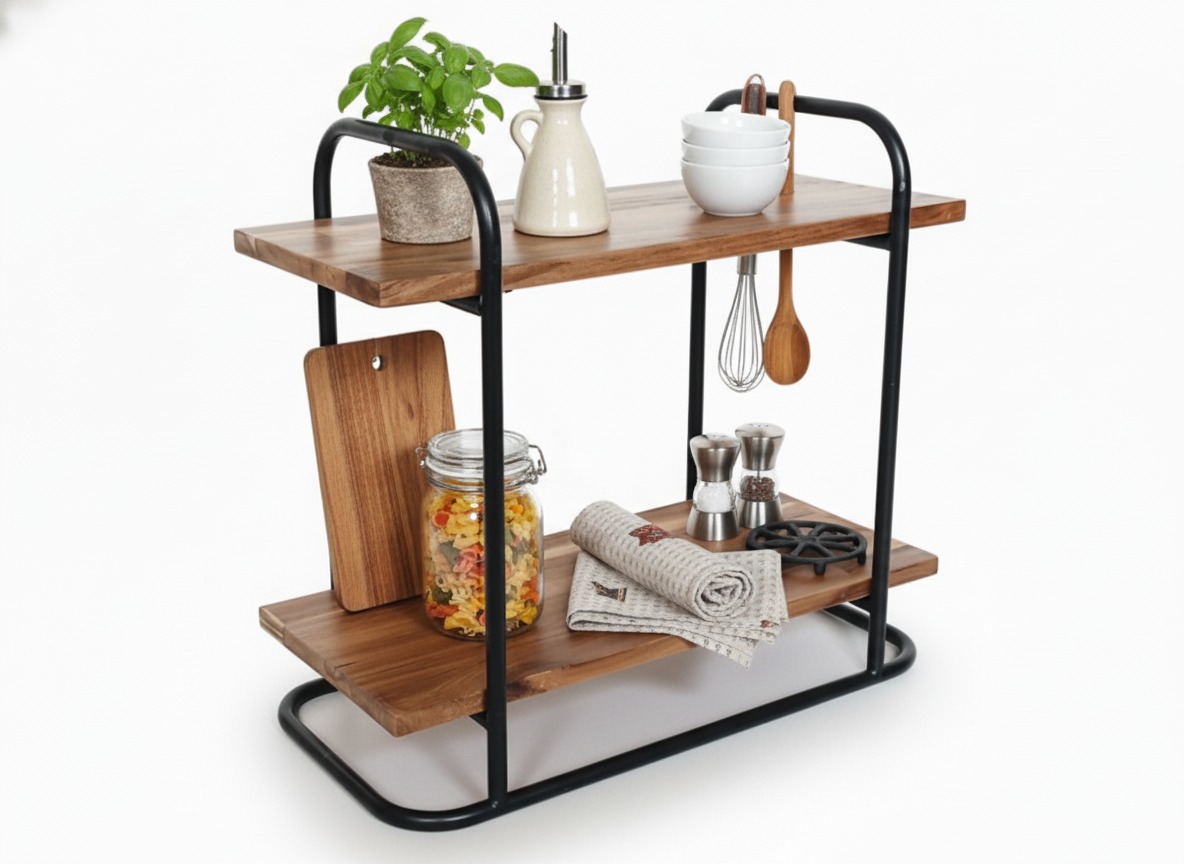 • Versatile Design: Features a modern industrial aesthetic with two spacious tiers, suitable for various kitchen setups and decorative styles.