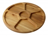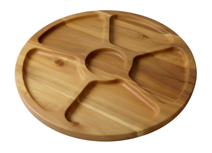 Elevate your dining experience with the sophistication of this stunning round acacia wood serving platter. Featuring a segmented design with five outer compartments and a central dip holder, this versatile tray is perfect for showcasing an array of appetizers, charcuterie, snacks, or desserts. The natural variations in the acacia wood grain provide a warm, inviting aesthetic, making each piece uniquely beautiful. Ideal for dinner parties, casual gatherings, or everyday use, this durable and stylish platter effortlessly combines functionality with sophisticated design. Elevate your culinary presentations and impress your guests with this eco-friendly and timeless kitchen essential, perfect for modern homes seeking sustainable and chic serveware.