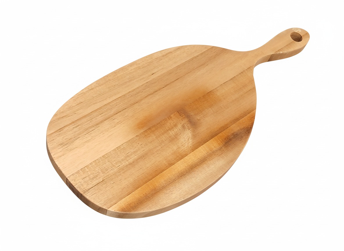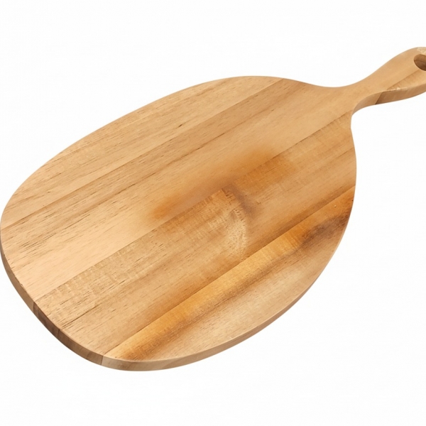 This elegant light wooden serving board, perfect for displaying appetizers or as a versatile kitchen essential, features a unique, organic shape and a convenient handle with a hanging hole. Crafted from durable natural wood, its smooth surface and visible grain add a touch of rustic charm to any kitchen or dining setting. Ideal for charcuterie, cheeses, fruits, or freshly baked bread, this multi-functional board doubles as a stylish cutting surface. Its contemporary design seamlessly blends with various home decors, from modern farmhouse to minimalist. Enhance your entertaining experience or elevate your everyday meal preparation with this aesthetically pleasing and practical display board, designed for both functionality and visual appeal.