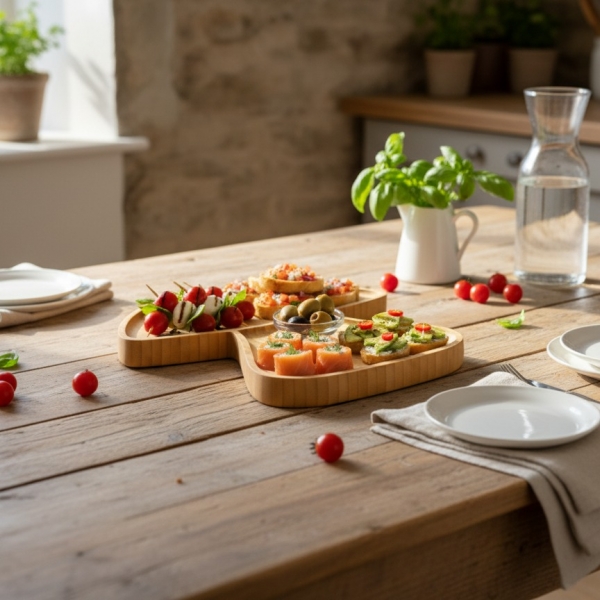 Be impressed with this charming and eco-friendly bamboo serving platter, uniquely designed in an adorable mushroom shape. Crafted from sustainable bamboo, this versatile tray brings a touch of natural elegance and whimsical flair to any setting. Its two distinct sections, mimicking the mushroom's cap and stem, are perfect for artfully arranging appetizers, snacks, fruits, or even a small charcuterie selection. Ideal for entertaining guests, family gatherings, or simply adding a decorative element to your home decor. The smooth, natural wood finish complements a variety of interior styles, from modern minimalist to rustic farmhouse. This durable and easy-to-clean platter is not just a functional kitchen accessory but also a delightful conversation starter, perfect for showcasing your culinary creations or organizing small decorative items with sustainable style. A must-have for those seeking unique, environmentally conscious home goods.