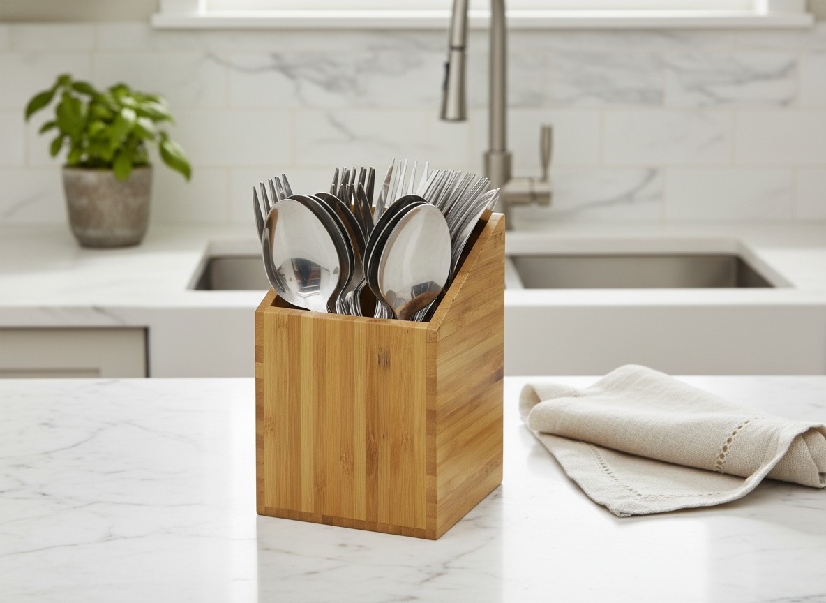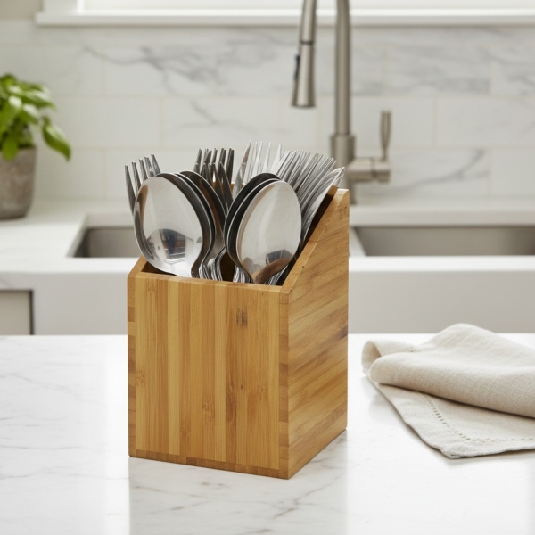 This Bamboo Utensil Holder is a perfect blend of style and functionality for your kitchen. Handcrafted with precision, this utensil holder is made from premium bamboo sourced from Vietnam, known for its durability and eco-friendly properties. With its ample space and clever design, it keeps your cooking utensils organized and within reach, adding convenience to your culinary experience. The natural beauty of bamboo lends a touch of elegance to your kitchen decor while promoting sustainable living. By choosing the Bamboo Utensil Holder, you not only enhance the organization of your kitchen but also support eco-conscious practices. Elevate your cooking space with this exquisite bamboo utensil holder.