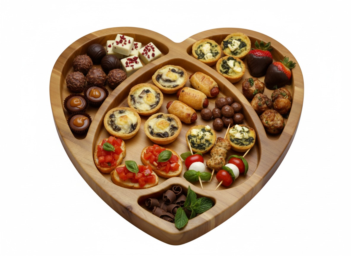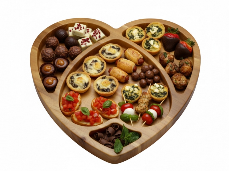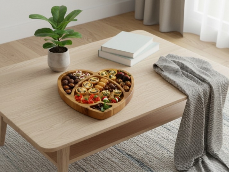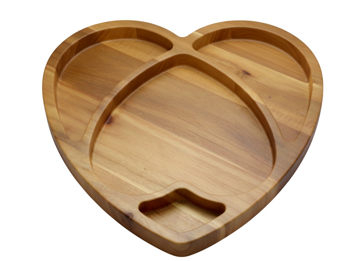 Heart-Shaped Acacia Wood Serving Platter - Sectioned Appetizer Tray