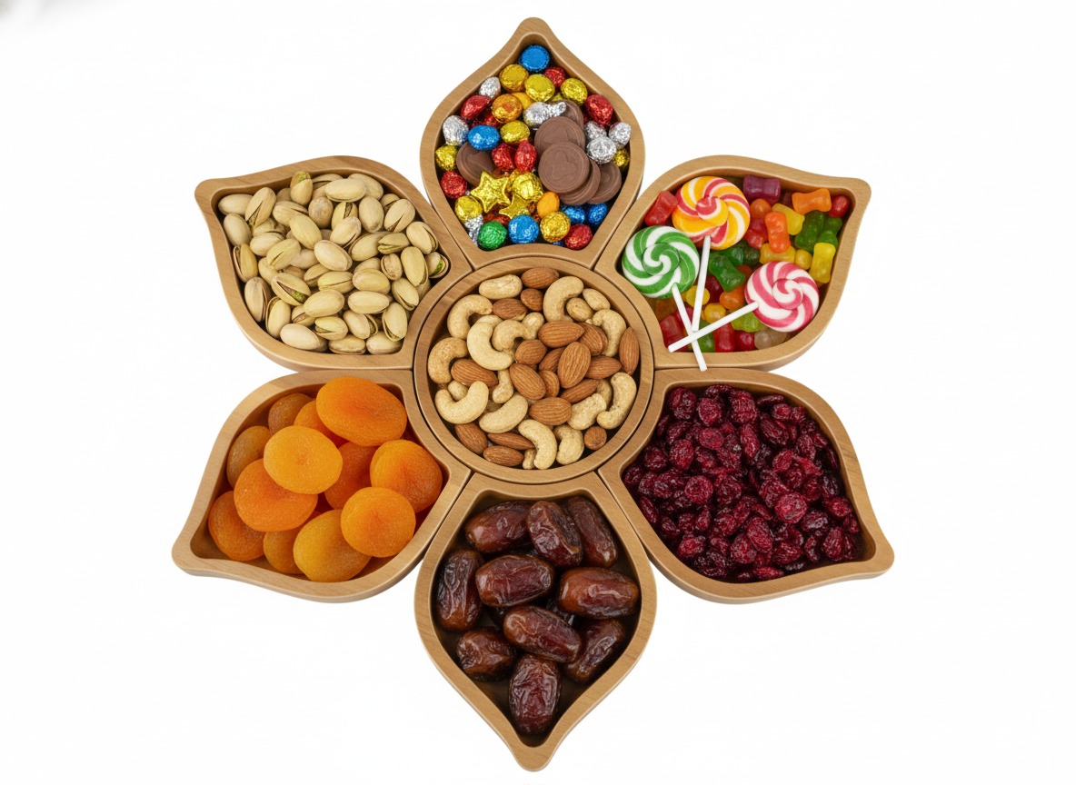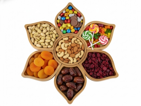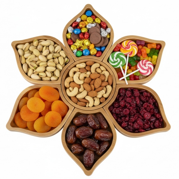 • Superior Craftsmanship: Each platter is meticulously handcrafted, featuring a unique flower design with seven distinct compartments, showcasing expert woodworking and attention to detail.
