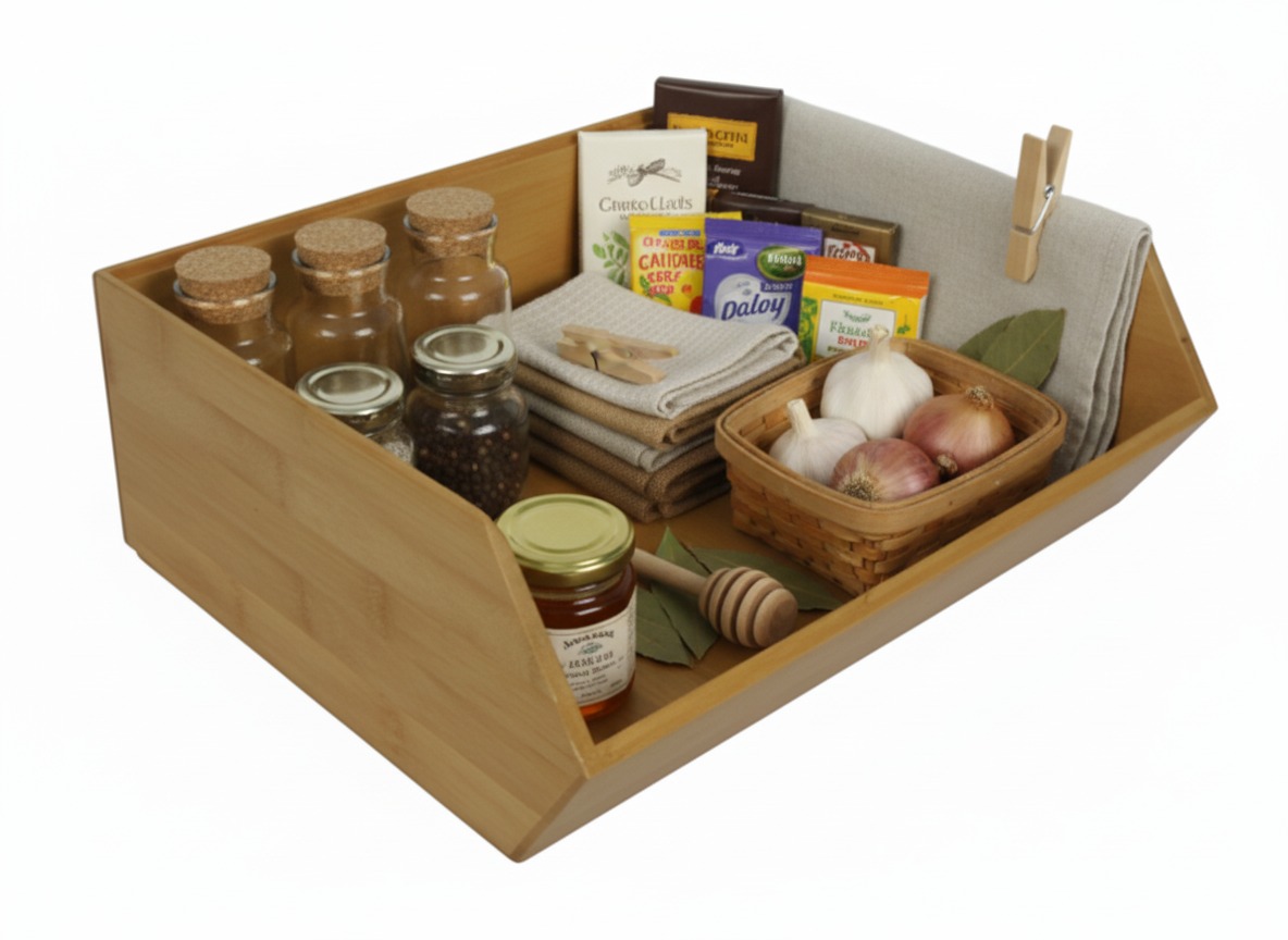 Discover the ultimate solution for a tidy and organized home with this versatile bamboo pantry bin. Crafted from sustainable bamboo, this eco-friendly storage container features a natural wood finish and a smart, angled front opening for easy access to contents. Its minimalist design seamlessly blends with various interior styles, from modern farmhouse to contemporary kitchens. Perfect for decluttering any space, this durable and stylish bin helps keep your essentials neatly arranged. Ideal for kitchen pantries, cabinets, shelves, or even bathroom and office organization, it brings both functionality and aesthetic appeal. Embrace sustainable living while enhancing your home's organization system with this essential bamboo storage solution, designed to simplify your everyday routine.