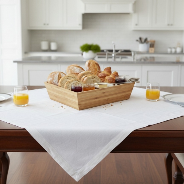 The natural bamboo bread basket is a versatile and eco-friendly addition to any kitchen or dining setting. Crafted from sustainable bamboo, it exudes a rustic charm while offering practical functionality. Its woven design provides ample ventilation, keeping bread and baked goods fresh for longer periods. The basket's sturdy construction ensures durability and easy maintenance. Its lightweight nature makes it effortless to carry and serve, adding an elegant touch to brunches, picnics, or dinner parties. With its natural aesthetics and sustainable material, the bamboo bread basket is a delightful choice for those who appreciate both style and environmental consciousness in their culinary endeavors.