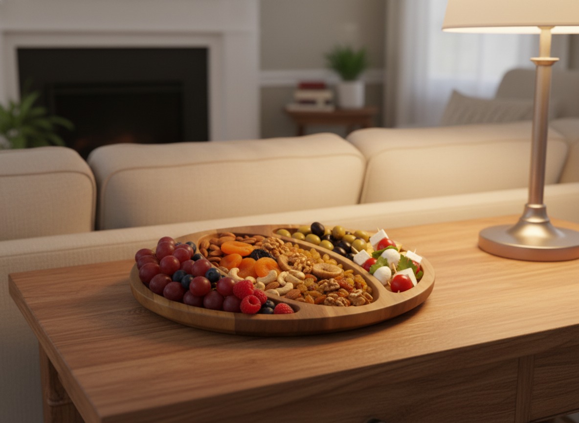 Acacia Wood Multi-Compartment Serving Platter - Elegant Entertaining Solution