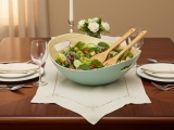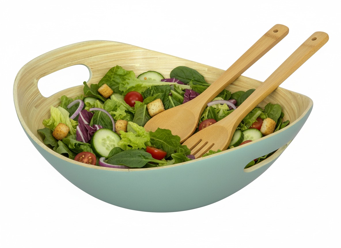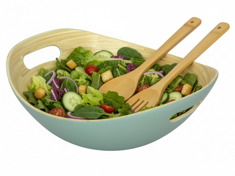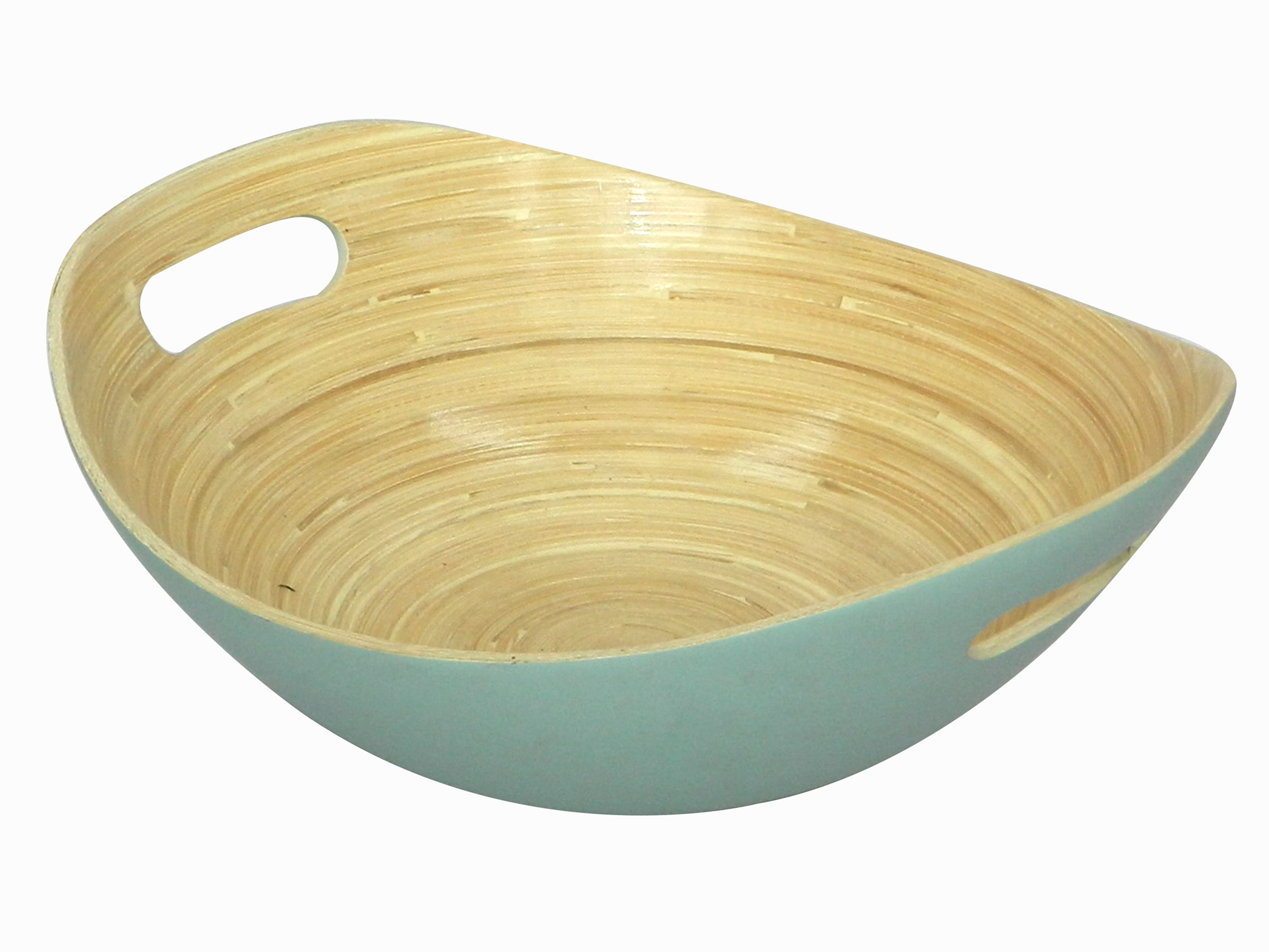 This beautifully crafted oval bamboo bowl is designed with both functionality and modern aesthetics in mind. The bowl features a naturally light-toned, horizontally striped bamboo interior, providing an organic and warm contrast to its smooth, matte light blue exterior. Thoughtfully integrated cutout handles on both sides ensure easy carrying and serving. Perfect as a stylish fruit bowl, a chic serving dish for salads or snacks, or simply a decorative centerpiece for any kitchen counter or dining table. Its eco-friendly bamboo construction appeals to environmentally conscious consumers seeking sustainable home decor and kitchenware. This versatile piece effortlessly blends minimalist design with natural elements, enhancing contemporary and casual living spaces.