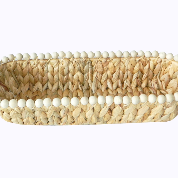 Vietnam water hyacinth bread basket with beads
