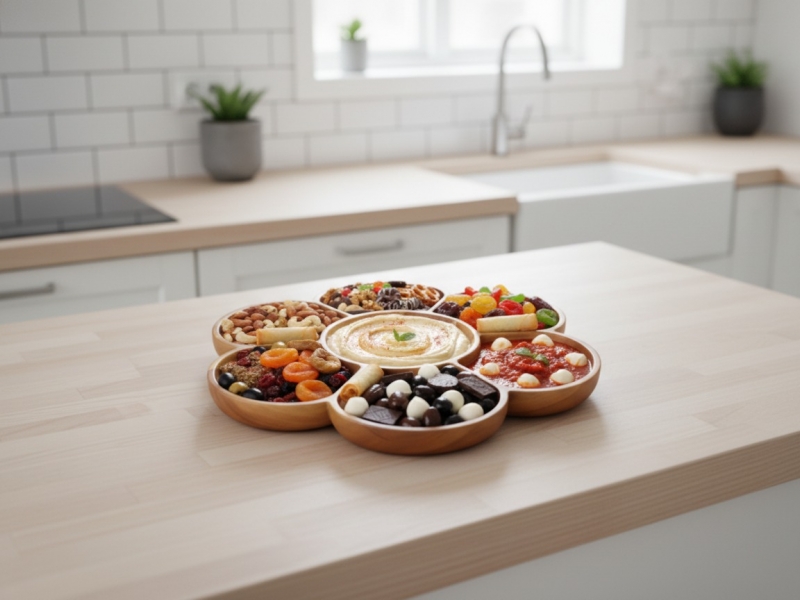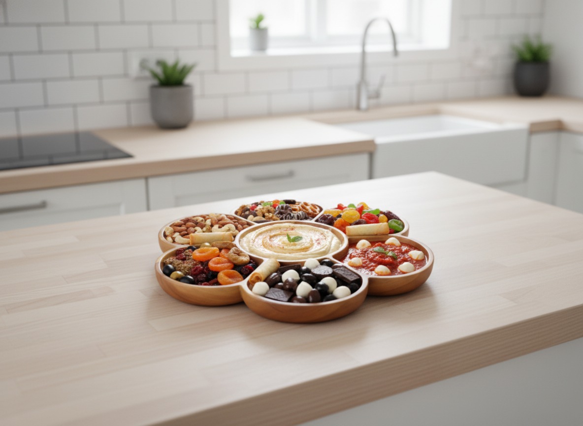 Discover this beautifully crafted acacia wood serving platter, featuring a unique multi-compartment design reminiscent of a delicate flower. Perfect for entertaining, this versatile tray offers seven distinct sections, ideal for presenting an assortment of snacks, appetizers, nuts, candies, or even a charcuterie spread. Made from durable and sustainable acacia wood, its natural grain and warm tones bring an organic elegance to any table setting or home decor. Whether hosting a dinner party, family gathering, or simply enjoying a quiet evening, this stylish and functional platter enhances your presentation. Its thoughtful design allows for organized serving, making it a must-have for modern living and a wonderful gift for those who appreciate natural home goods and entertaining essentials.