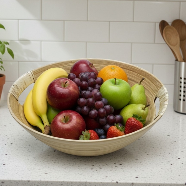 Introducing our exquisite Bamboo Salad Bowl with Rattan Accent, where style meets sustainability. Crafted with precision, this stunning bowl is the perfect blend of natural beauty and eco-conscious design. Made from 100% organic bamboo, it offers a durable and lightweight solution for your culinary needs. The elegant rattan accent adds a touch of sophistication, making it an eye-catching centerpiece for any occasion. Its smooth finish and spacious interior provide ample room for serving your favorite salads, fruits, or snacks. With its timeless appeal and commitment to the environment, our Bamboo Salad Bowl with Rattan Accent is the epitome of functional elegance for the conscious consumer.