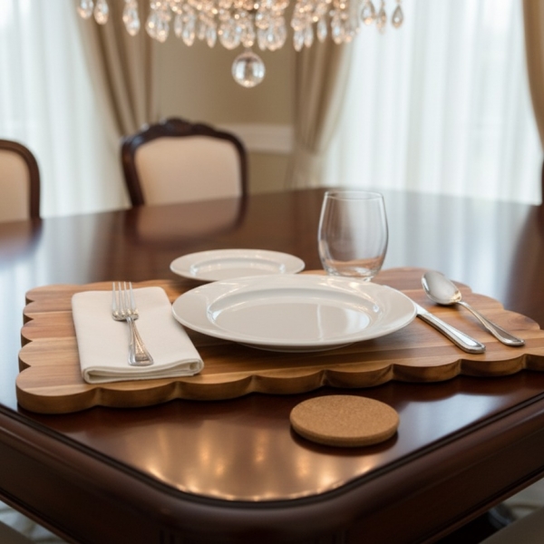 Elevate your dining experience with this beautifully crafted acacia wood scallop placemat. Featuring a unique wavy, scalloped edge design, this versatile board brings a touch of natural elegance to any table setting. Made from durable and sustainably sourced acacia wood, its rich grain and warm tones create a rustic yet sophisticated aesthetic. Perfect for protecting your table as a placemat, or serving as a chic charcuterie board, cheese platter, or decorative tray for appetizers and desserts. Its sturdy construction ensures longevity, while the distinctive shape makes it a focal point for entertaining or everyday use. An ideal addition to modern, farmhouse, or bohemian home decor styles, enhancing both functionality and visual appeal.