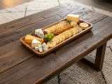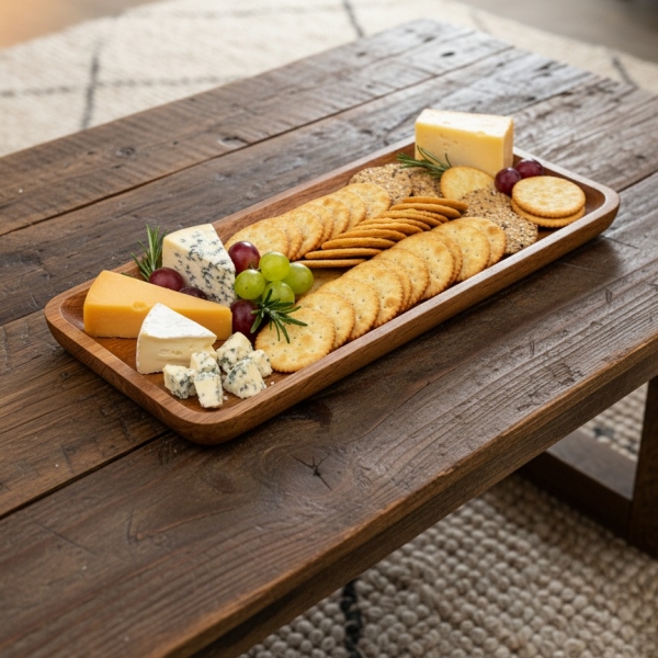 Discover the natural elegance of this rectangular acacia wood long platter, an essential addition to any contemporary home or event. Crafted from sustainably sourced acacia wood, its distinctive grain patterns and warm, inviting tones bring an organic touch to your decor. Perfect for serving appetizers, cheeses, charcuterie, or delectable desserts, this versatile tray also excels as a stylish organizer. Use it to neatly arrange candles, remote controls, or mail on a coffee table or entryway console. Its durable and easy-to-clean surface makes it ideal for everyday use, while its sophisticated design elevates any gathering. Embrace sustainable living with this beautiful and functional acacia serving tray, seamlessly blending utility with minimalist aesthetic.