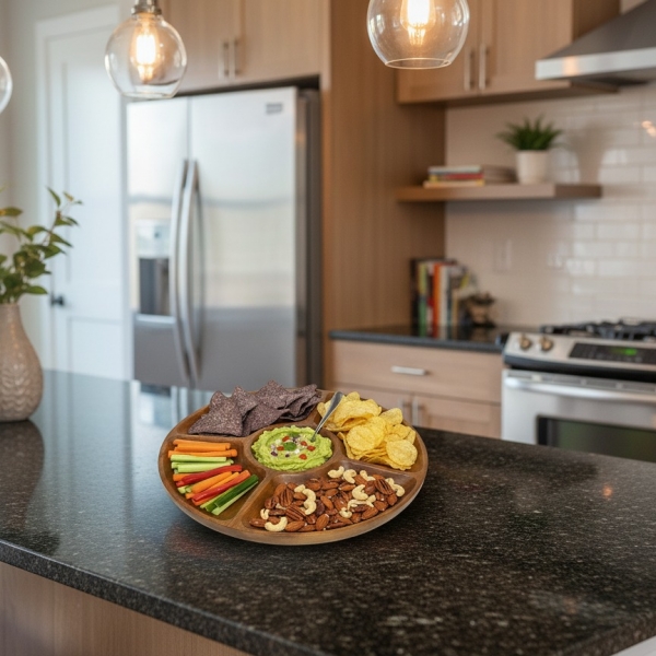 Discover the perfect blend of elegance and sustainability with our Vietnam Acacia Dip and Chip Tray. Handcrafted by skilled artisans, this tray is made from 100% sustainable acacia wood, renowned for its durability and rich, natural grain. Ideal for entertaining, the tray features a unique, versatile design that accommodates both dips and chips, making it a stylish centerpiece for any gathering. Its eco-friendly origin reflects a commitment to preserving our planet while offering a luxurious dining experience. Whether you're hosting a party or enjoying a quiet evening, this tray combines functionality with timeless beauty. Elevate your serveware collection with a piece that embodies the essence of Vietnamese craftsmanship and sustainable living.
