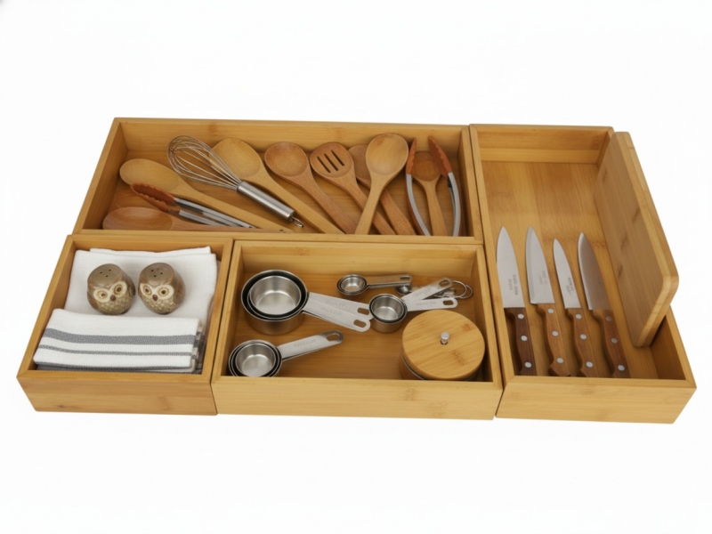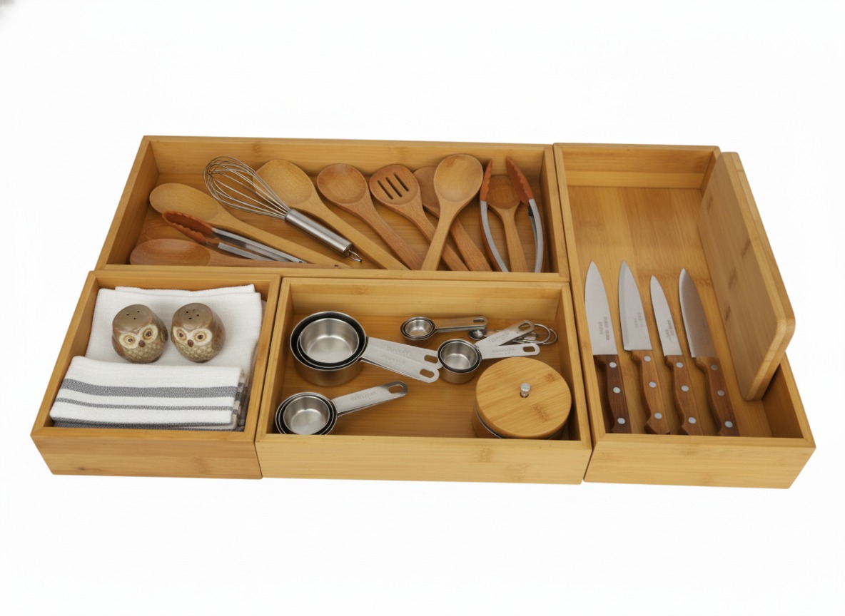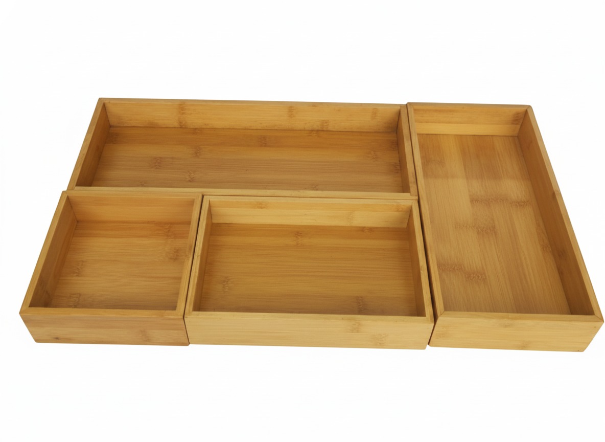 Discover the ultimate solution for a clutter-free home with this versatile 4-piece bamboo drawer organizer set. Crafted from sustainable, natural bamboo, these modular trays offer an eco-friendly and stylish way to organize any space. Perfect for kitchen drawers, office desks, bathroom vanities, or craft tables, they help sort everything from cutlery and utensils to stationery, cosmetics, and small accessories. Their durable construction and minimalist design ensure a clean aesthetic while maximizing storage efficiency. Easily arrange and rearrange these stackable inserts to fit your specific needs, transforming messy drawers into perfectly ordered systems. A must-have for modern, organized living in both residential and commercial settings.