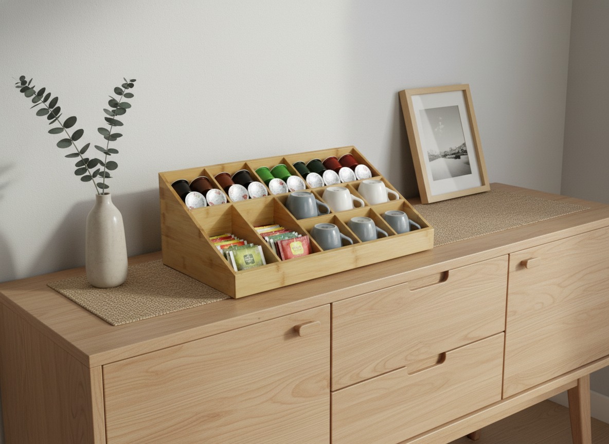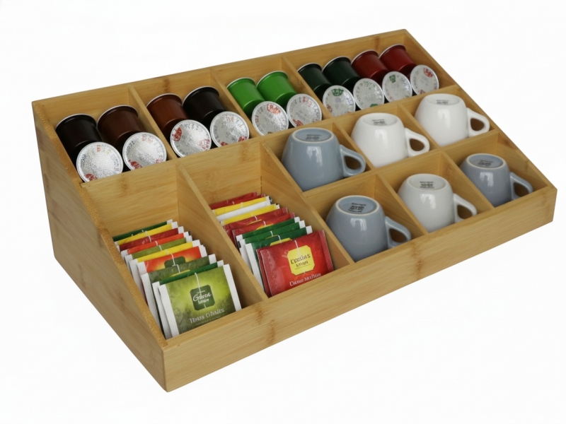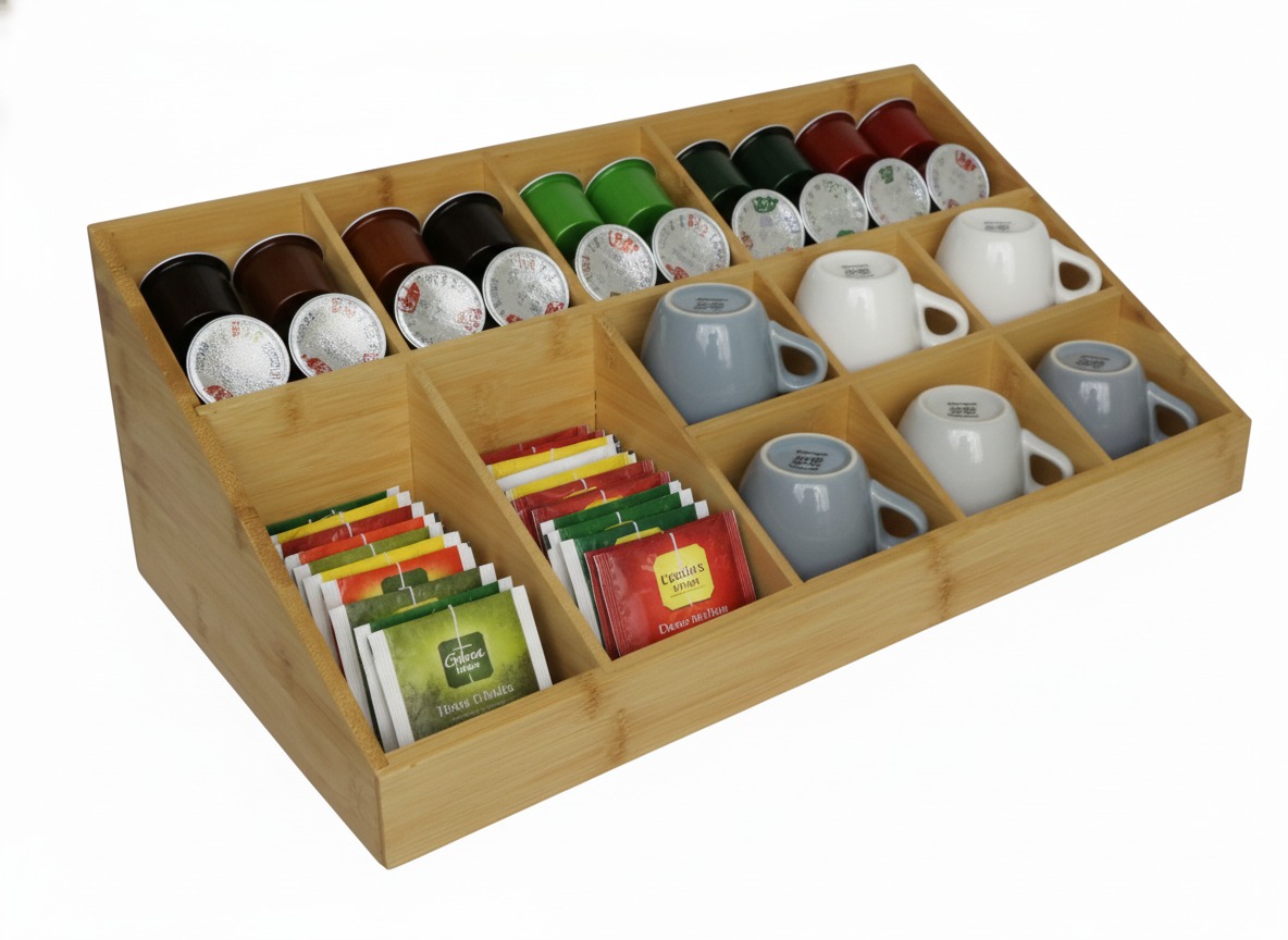 Discover the ultimate organization solution for your kitchen or office with this stylish bamboo multi-compartment holder. Expertly crafted from sustainable bamboo, this versatile organizer features several tiered sections, perfect for neatly storing an assortment of tea bags, coffee pods, sugar packets, stirrers, and even small cups. Its elegant, natural wood finish complements any decor, adding a touch of eco-friendly sophistication. Designed for both functionality and aesthetics, it helps declutter countertops and keeps essentials easily accessible. Ideal for homes, cafes, or office break rooms, this durable and compact storage unit is a must-have for tea and coffee lovers seeking a practical yet beautiful way to keep their beverage station tidy and inviting. Enhance your daily routine with this chic and efficient bamboo organizer.