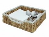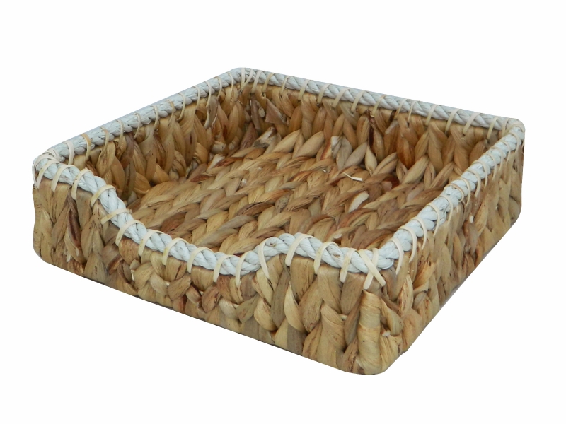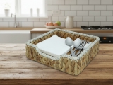 Square water hyacinth napkin holder with rope rim