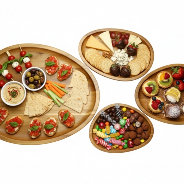 Be impressed with the serene elegance of this set of four acacia wood platters, designed with unique organic shapes that evoke a tranquil, Zen-like aesthetic. Each piece showcases the beautiful natural grain and warm tones of acacia wood, bringing an element of rustic charm and modern sophistication to any setting. Ideal for serving appetizers, desserts, or small bites, these versatile trays also function beautifully as decorative accents. Their varied sizes allow for creative arrangements on a coffee table, dining table, or kitchen island. Perfect for those who appreciate natural materials and minimalist design, these durable wooden platters enhance both everyday living and special occasions in contemporary and traditional homes across the USA and Europe.