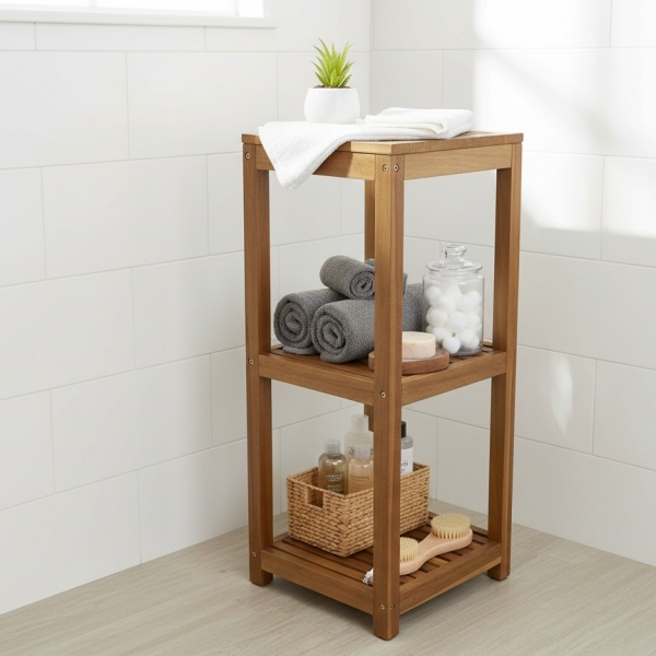 3-Tier Acacia Wood Bath Shelf KD - Sustainable Bathroom Organizer