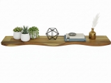 Unfold the elegant appeal of this curvy acacia floating shelf, a perfect blend of natural beauty and modern design. Crafted from rich, variegated acacia wood, this shelf features a distinctive wavy front edge that adds a unique organic touch to any room. Its hidden mounting system creates a seamless, 'floating' effect, ideal for contemporary and minimalist interiors. Perfect for displaying cherished decorative items, small plants, books, or art, it enhances wall space without clutter. This versatile piece offers both functional storage and sophisticated aesthetic appeal, making it an excellent addition to living rooms, bedrooms, or hallways. Elevate your home decor with this stylish and durable acacia wood shelf, a truly eye-catching accent.