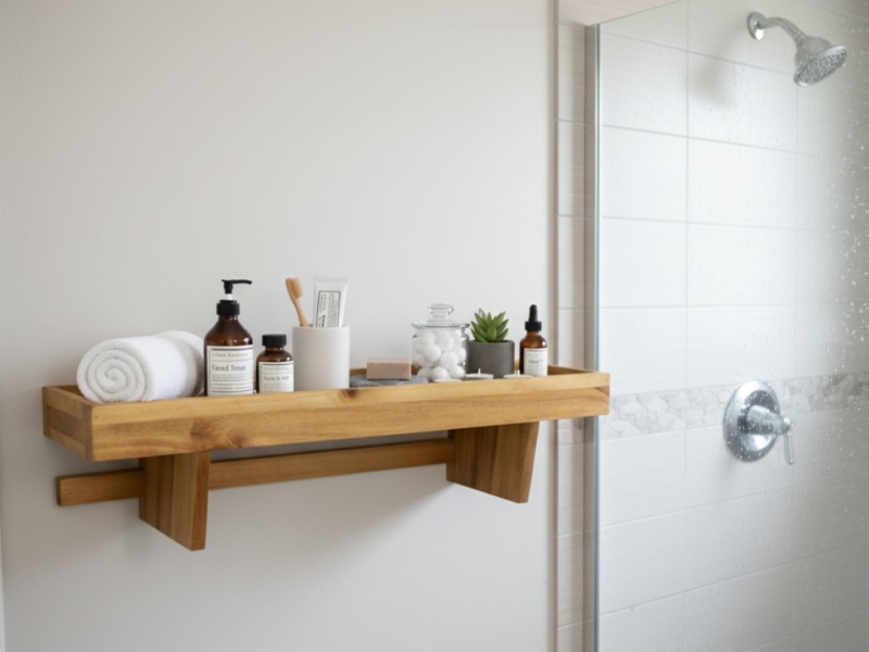 Elegant acacia wood bath shelf