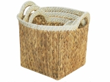 3pc round water hyacinth storages with rope rim