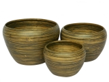 set of 3 pcs - round spun bamboo planters - antique black